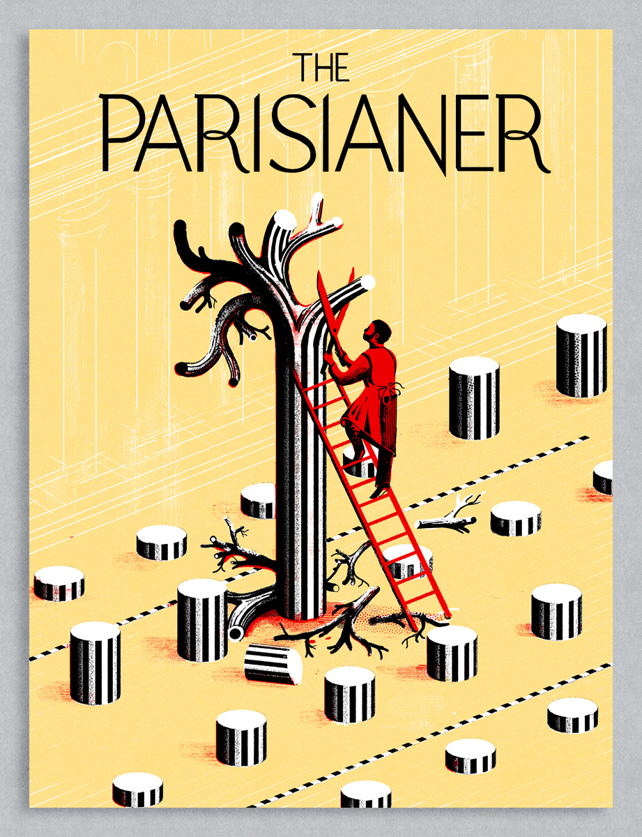 Dessin réalisé pour la grande exposition collective « The Parisianer », nous avons fait germer les colonnes Buren.