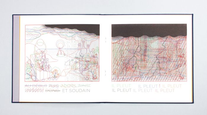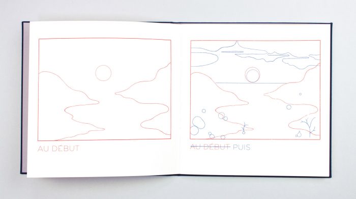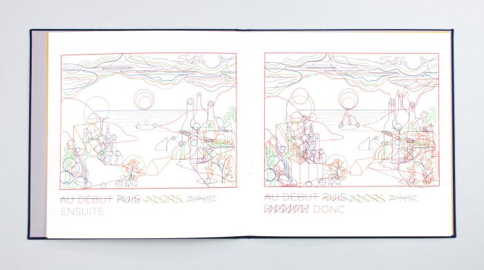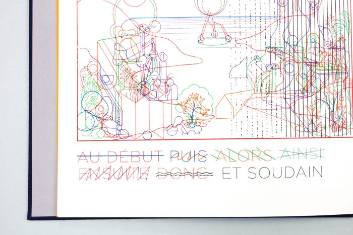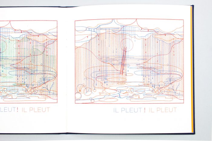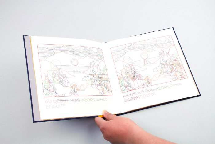 Un ouvrage imprimé en Riso, chaque page est marquée par l’apparition d’une couleurs supplémentaire, et produit dans notre atelier.